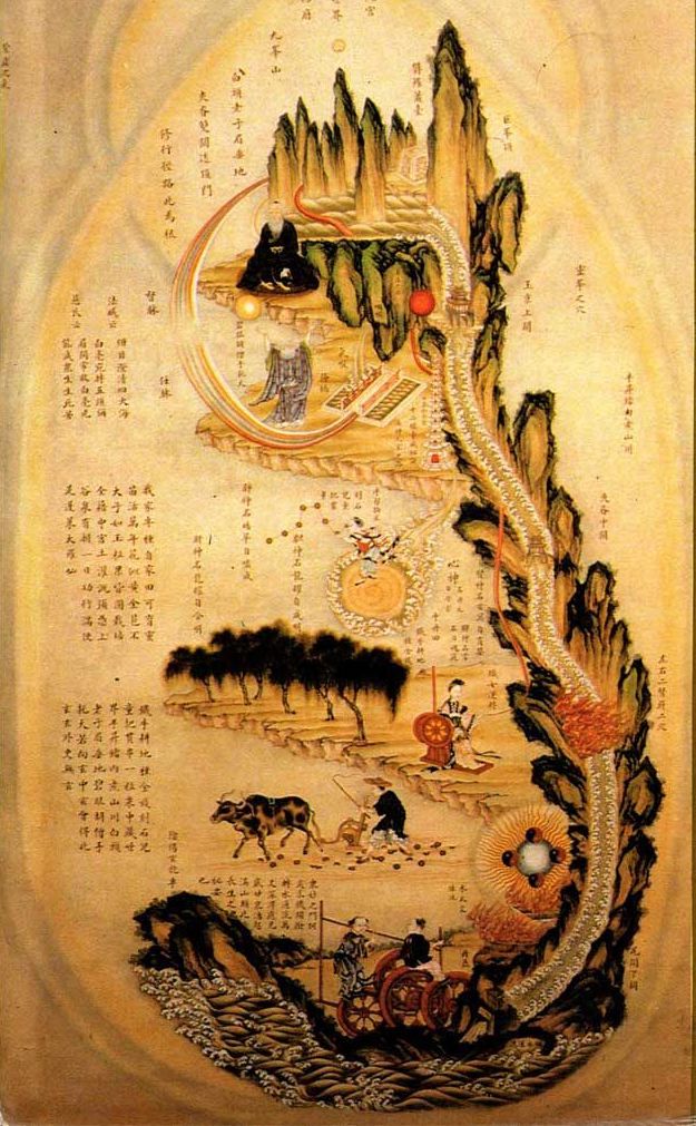 The result of spiritual practice within Meditation is to bring realisation of the nature of Spirit or ‘True Self’. The layers of the acquired mind are peeled back like so many veils that cover the night sky from our view. Many traditions spoke of the bright light of illumination that sat at the gateway of Spirit and this is where both alchemical and older Chan methods may lead a person. Spoken of as the ‘golden light of illumination’, ‘the thousand rays of the sun’, ‘the brilliant moon over the mountain peak’ or even ‘the light of God’, the light of illumination arises when equinimity of mental activity opens the gateway to Spirit. Rather than being the be all and end all of meditation though, this is where the path really begins as this light gives access to the root of individuated manifestation. It is the ‘mysterious pass’ of Daoist practice and the place through which the awakening process may be initiated.
